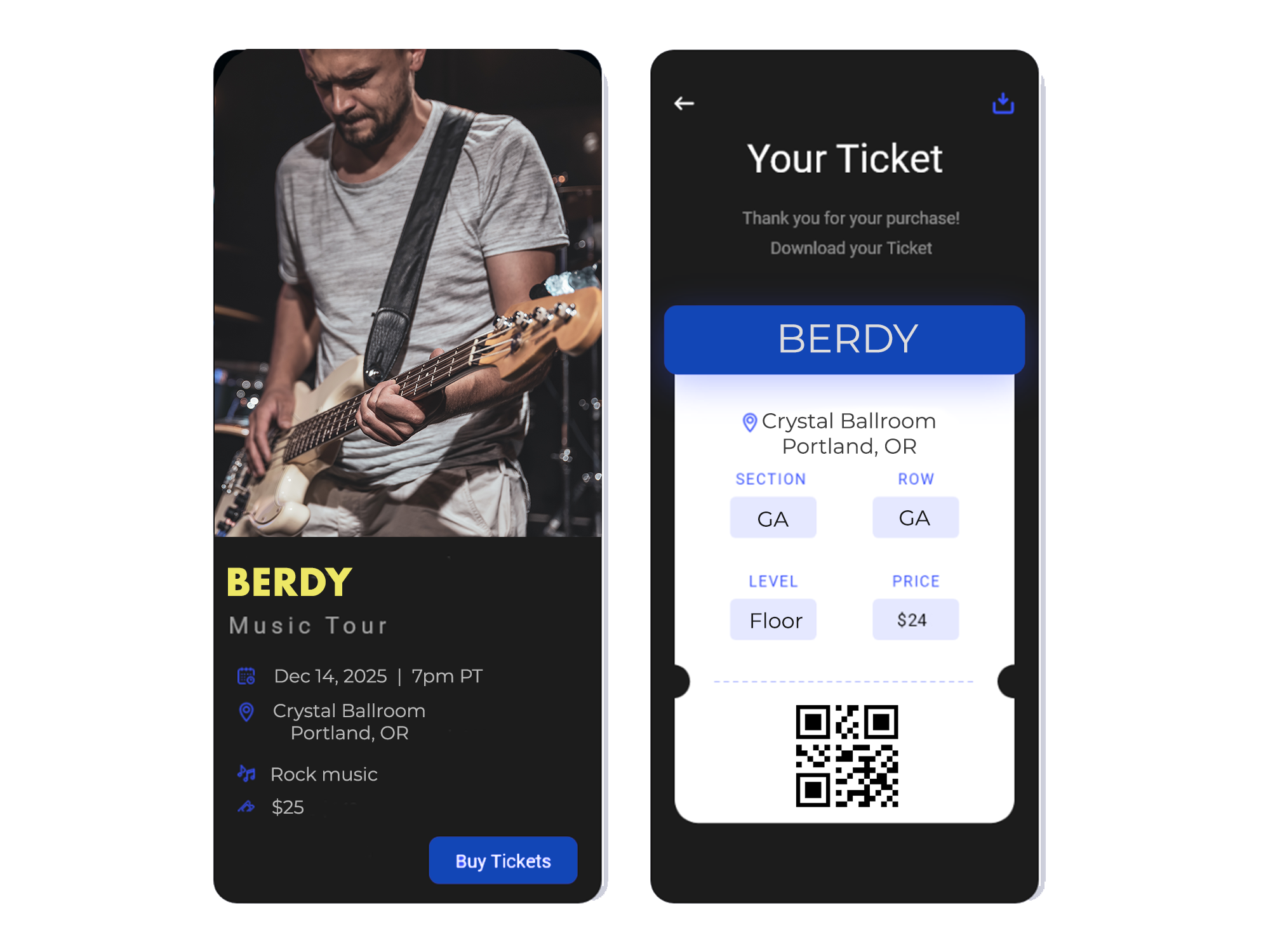 Ticket pre-sales, tiered pricing, QR door scanning, and transparent revenue splits — all in one platform built for bands, venues, and promoters.